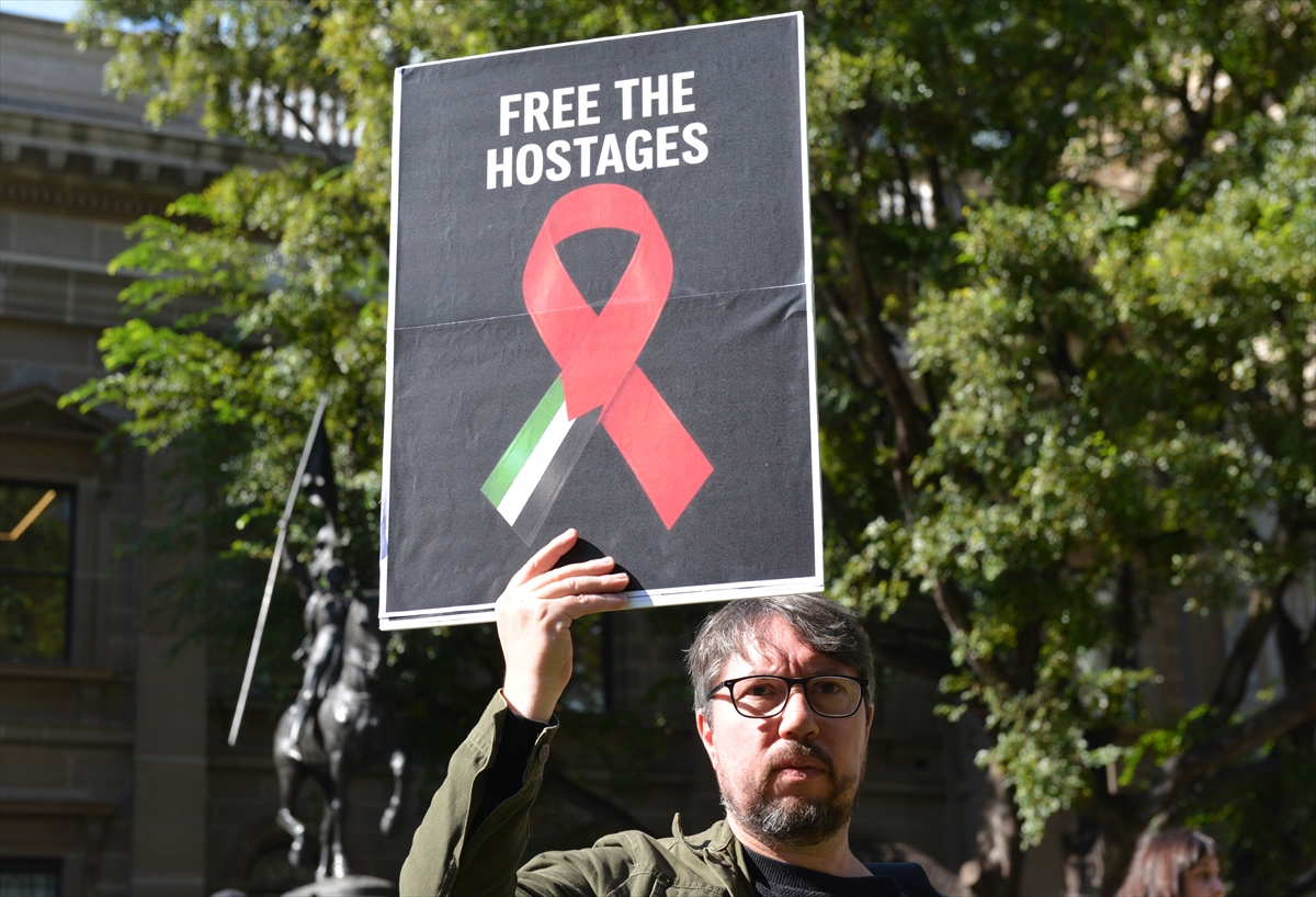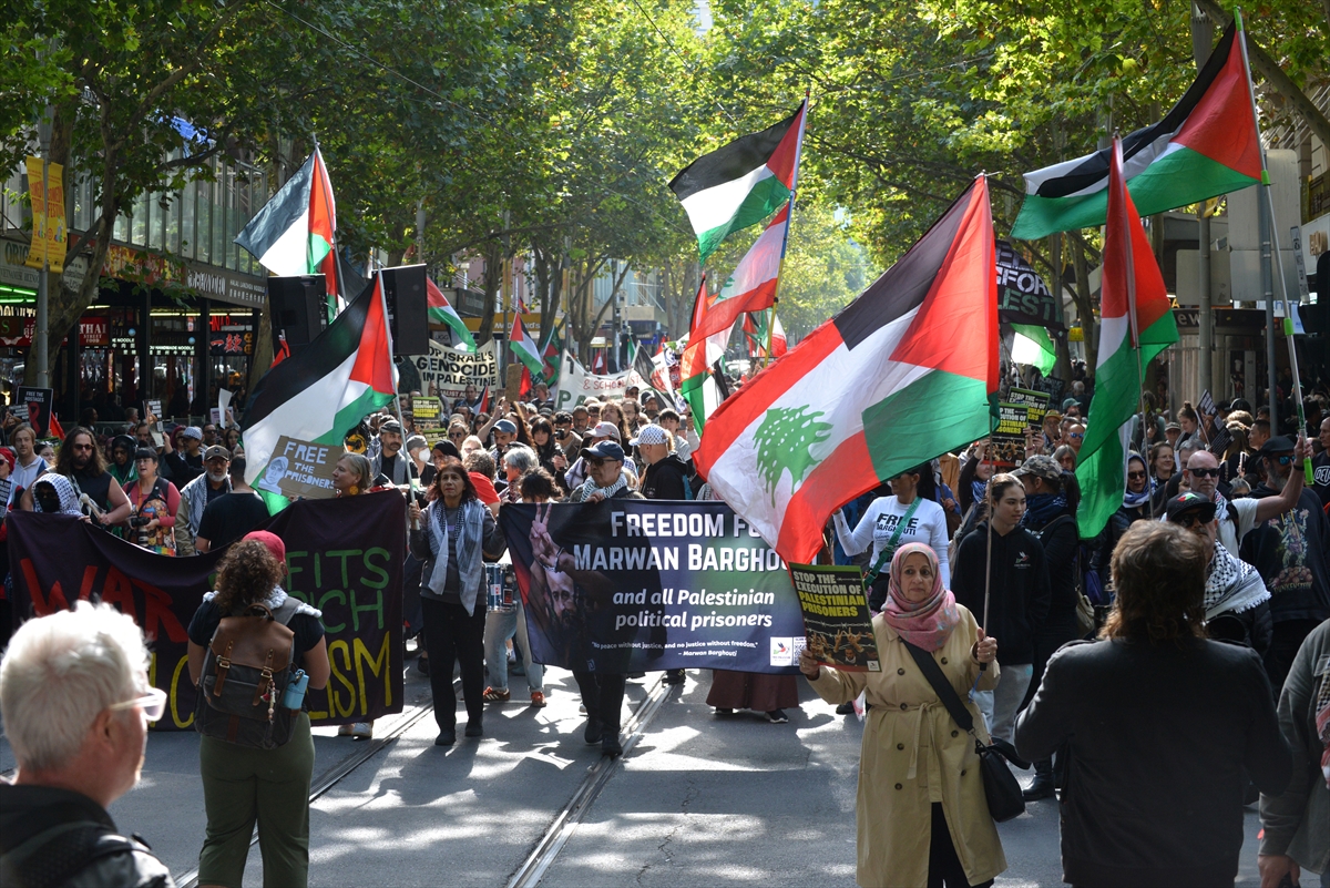 Avustralya'nın Melbourne kentinde "Filistinli Esirler Günü" dolayısıyla toplanan göstericiler, İsrail'in Filistinli esirlere yönelik idam cezasını öngören yasasını protesto etti.
