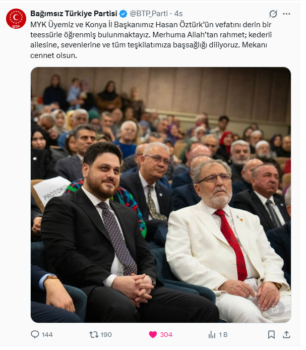 Bağımsız Türkiye Partisi resmi hesabından yayınlanan mesajda: