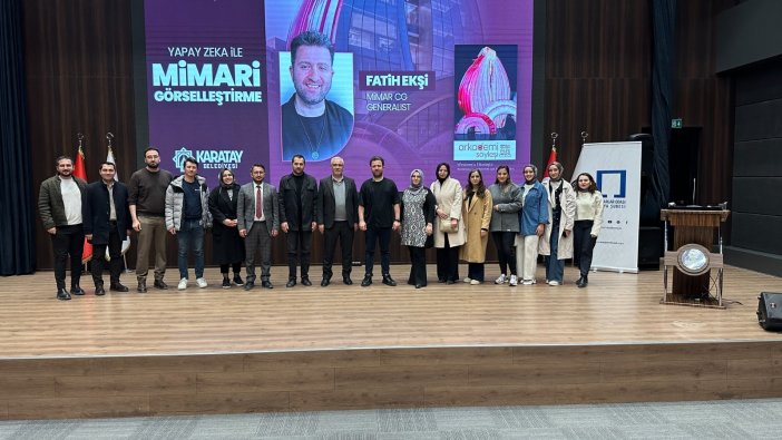 Mimarlar Odası Konya Şubesi’nin davetlisi olarak Konya’ya gelen mimar, görselleştirme sanatçısı ve sosyal medya fenomeni Fatih Ekşi, 11 Nisan Cuma günü “Yapay Zeka ile Mimari Görselleştirme” konulu bir söyleşi gerçekleştirdi.
