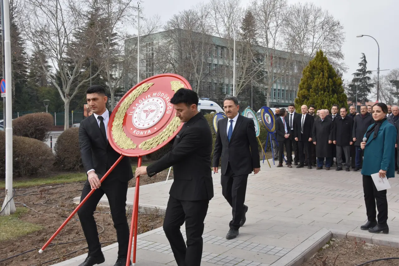 14 Mart Tıp Bayramı, Konya’da düzenlenen törenle kutlandı. İl Sağlık Müdürlüğü tarafından organize edilen program kapsamında sağlık çalışanları ve yöneticiler, Atatürk Anıtı’na çelenk bıraktı.