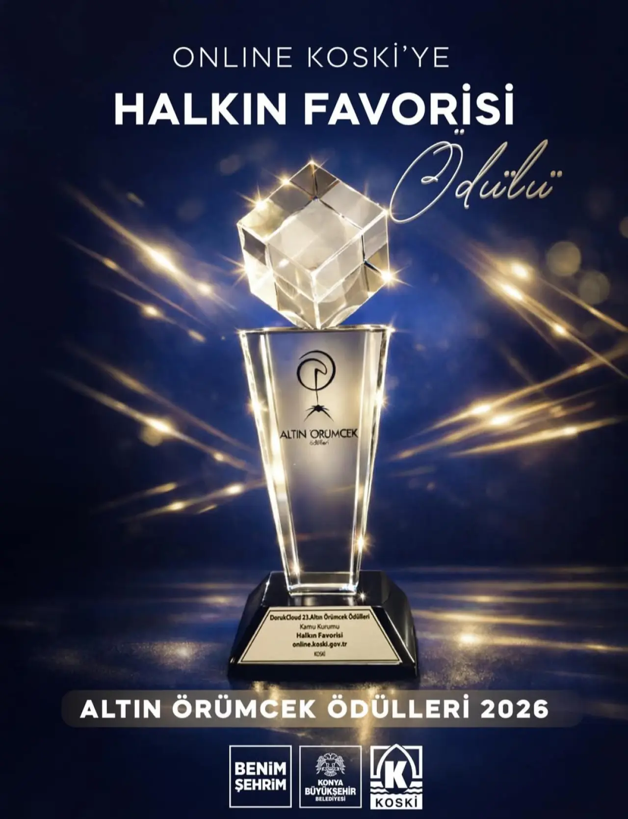 Konya Büyükşehir Belediyesi KOSKİ Genel Müdürlüğü’nün dijital hizmet platformu Online KOSKİ, 23. Altın Örümcek Ödülleri 2025 kapsamında Kamu Kurumu Kategorisi’nde “Halkın Favorisi” Ödülünün sahibi oldu.