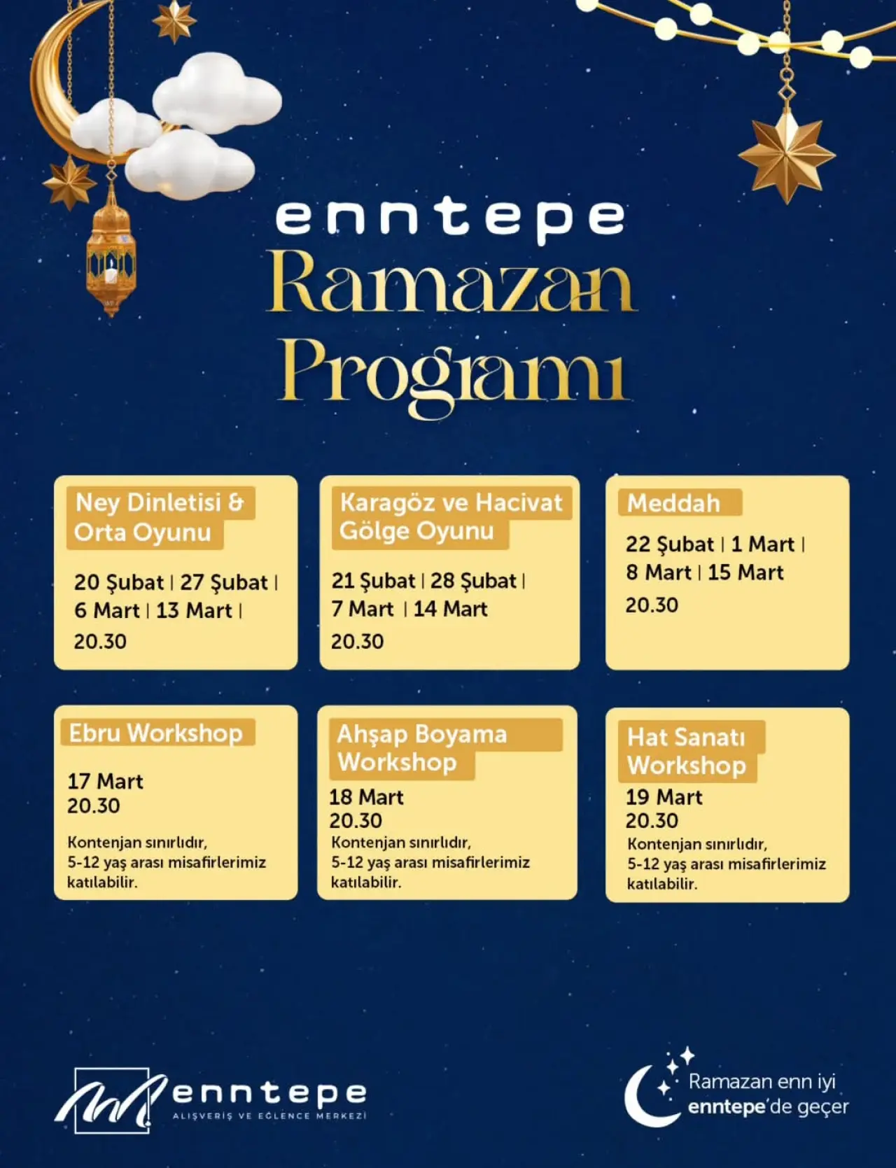 “Ramazan #EnnGüzel Enntepe’de yaşanır” sloganıyla düzenlenen etkinlikler, Ramazan boyunca ziyaretçilerini bekliyor.