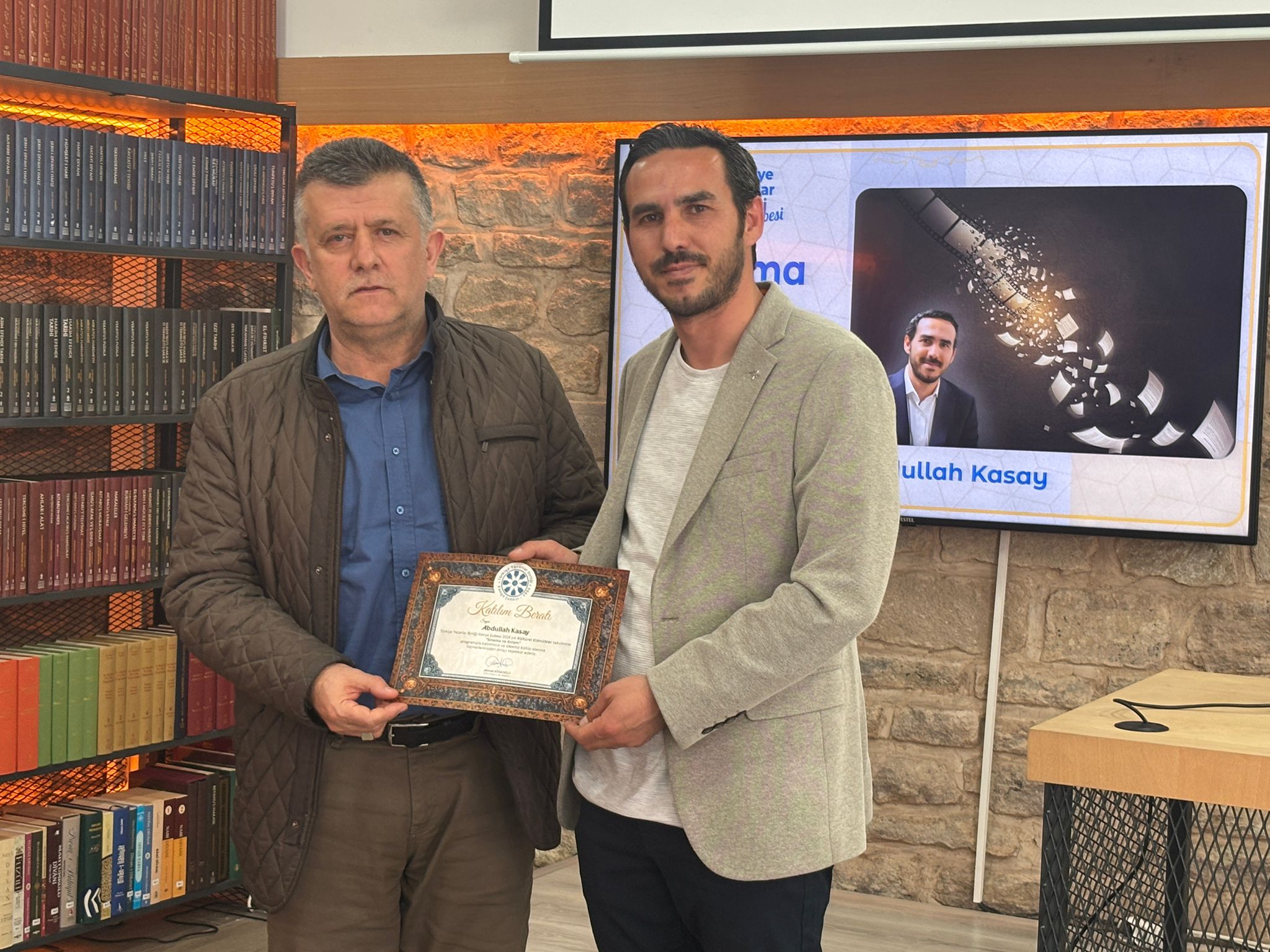 Türkiye Yazarlar Birliği (TYB) Konya Şubesi’nin kültürel etkinlikler takvimi kapsamında Karatay Belediyesi katkılarıyla düzenlediği "Sinema ve Anlam" konulu program, TYB Konya Şubesi D. Mehmet Doğan Kütüphanesi’nde gerçekleştirildi. Prof. Dr. Murat Ak’ın düzenlediği programda, yazar ve Mahalle Mektebi Dergisi Genel Yayın Yönetmeni Abdullah Kasay, sinemanın modern dünyadaki işlevini, ideolojik boyutlarını ve hakikatle olan bağını katılımcılarla paylaştı.